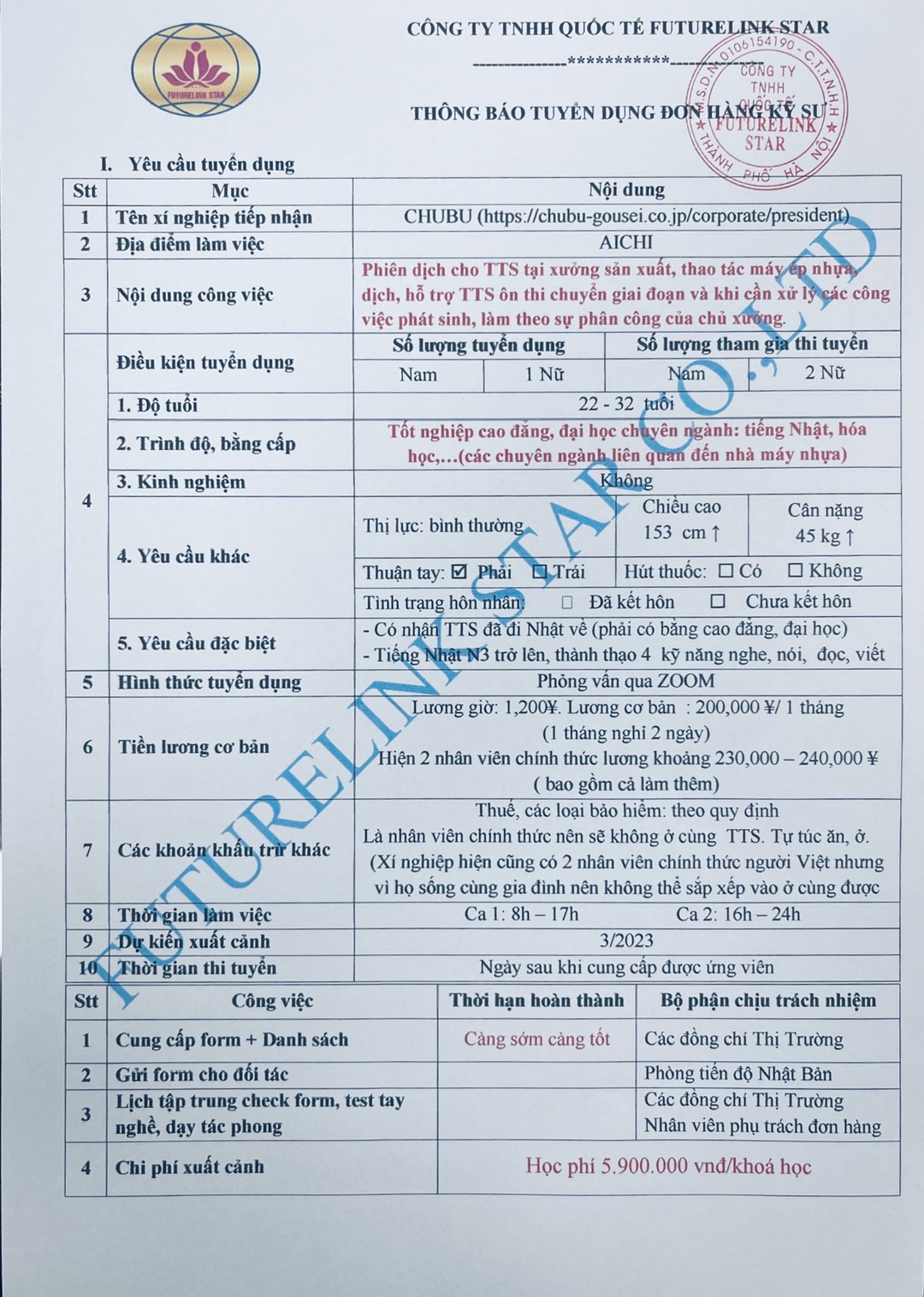 TUYỂN NỮ PHIÊN DỊCH TẠI XƯỞNG TỈNH AICHI. LƯƠNG CƠ BẢN 200.000 YÊN/THÁNG. PHỎNG VẤN NGAY SAU KHI ĐỦ ỨNG VIÊN