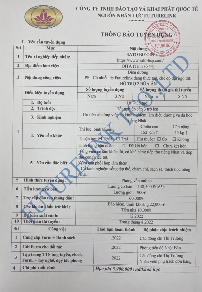 4. TUYỂN 3 NỮ ĐIỀU DƯỠNG TỈNH OITA, LƯƠNG CƠ BẢN 148,500 YÊN/THÁNG, HỖ TRỢ 2 BỮA ĂN. PHỎNG VẤN NGAY SAU KHI ĐỦ ỨNG VIÊN