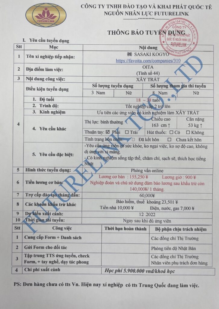7. TUYỂN 3 NAM XÂY CHÁT TỈNH OITA, CAM KẾT LƯƠNG THỰC LĨNH TỪ 140,000 YÊN/THÁNG. PHỎNG VẤN NGAY SAU KHI ĐỦ ỨNG VIÊN
