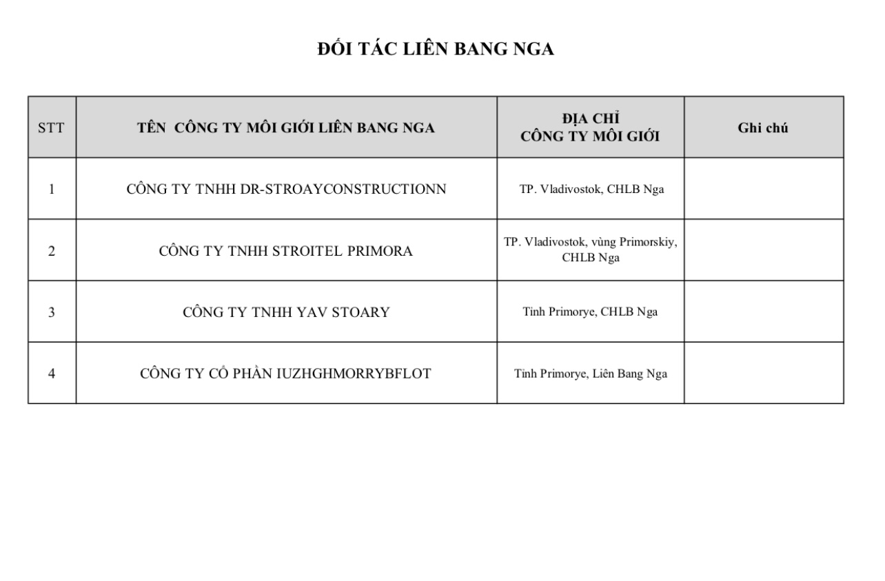 ĐỐI TÁC LIÊN BANG NGA