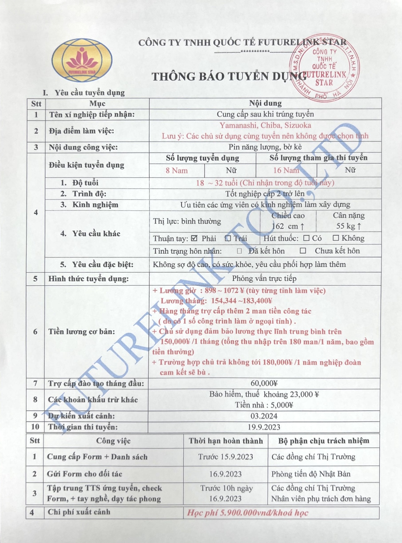 5. TUYỂN 8 NAM LẮP ĐẶT TẤM PIN NĂNG LƯỢNG, BỜ KÈ TỈNH YAMANASHI, CHIBA, SHIZUOKA. CAM KẾT LƯƠNG 1 NĂM TRÊN 180 MAN TRỞ LÊN. PHỎNG VẤN 19.9