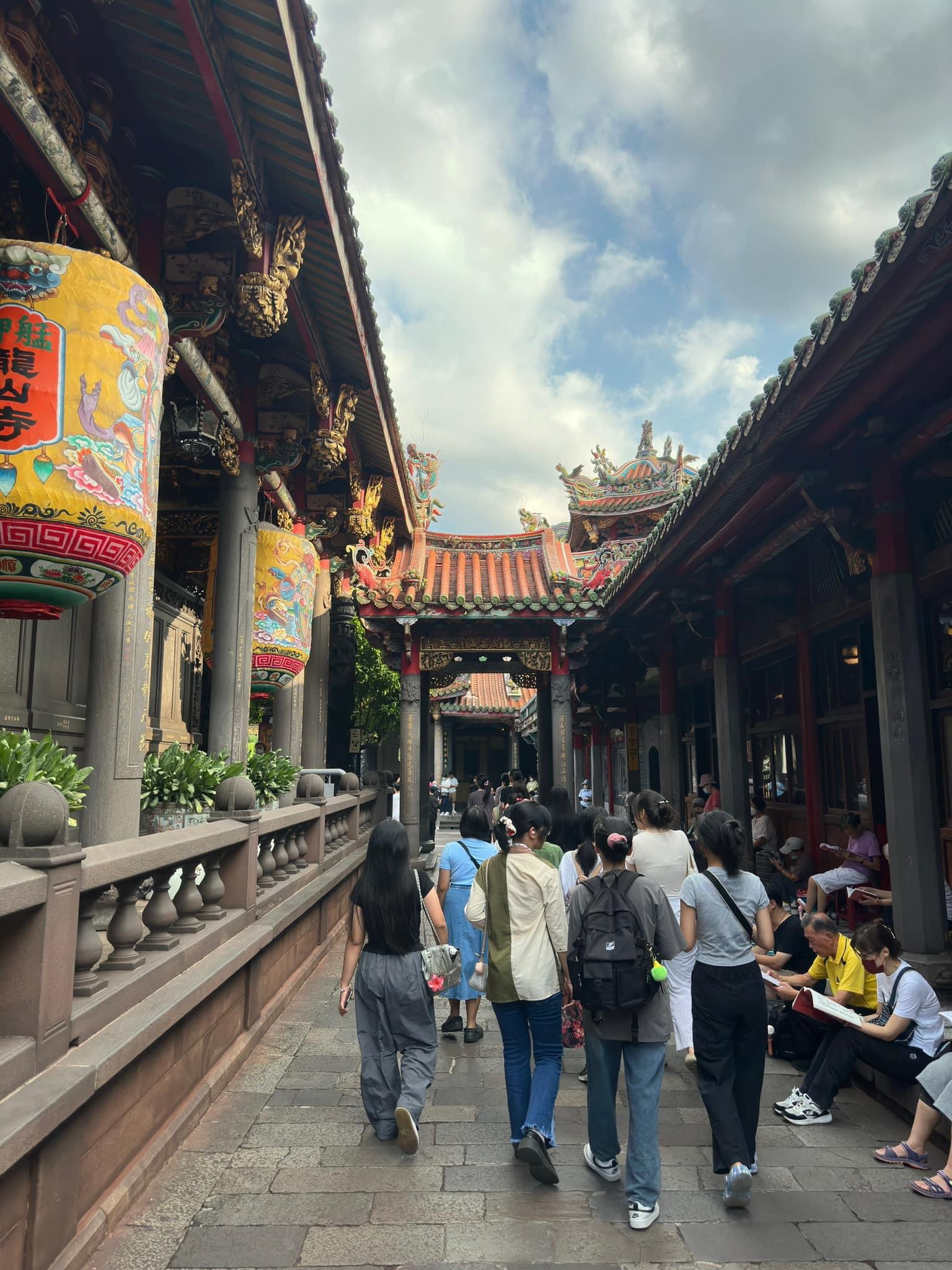 – Buổi chiều: Thầy cô đưa các bạn đi thăm chùa Long Sơn gần Trường, ngôi chùa có lịch sử hơn 300 năm, nhiều bạn đã mua được những món quà lưu niệm nho nhỏ, thưởng món ăn vặt Đài Loan ngon tuyệt!