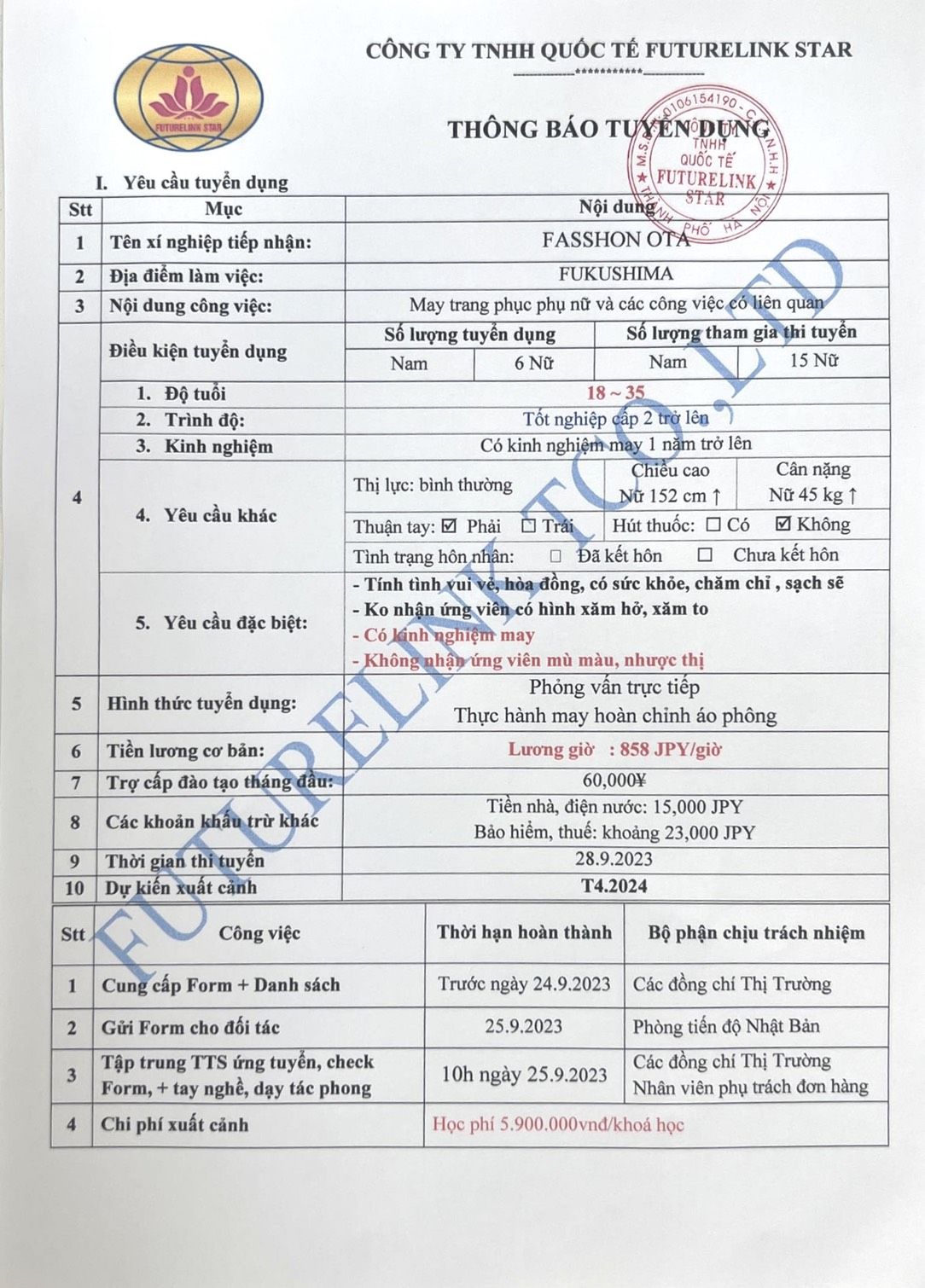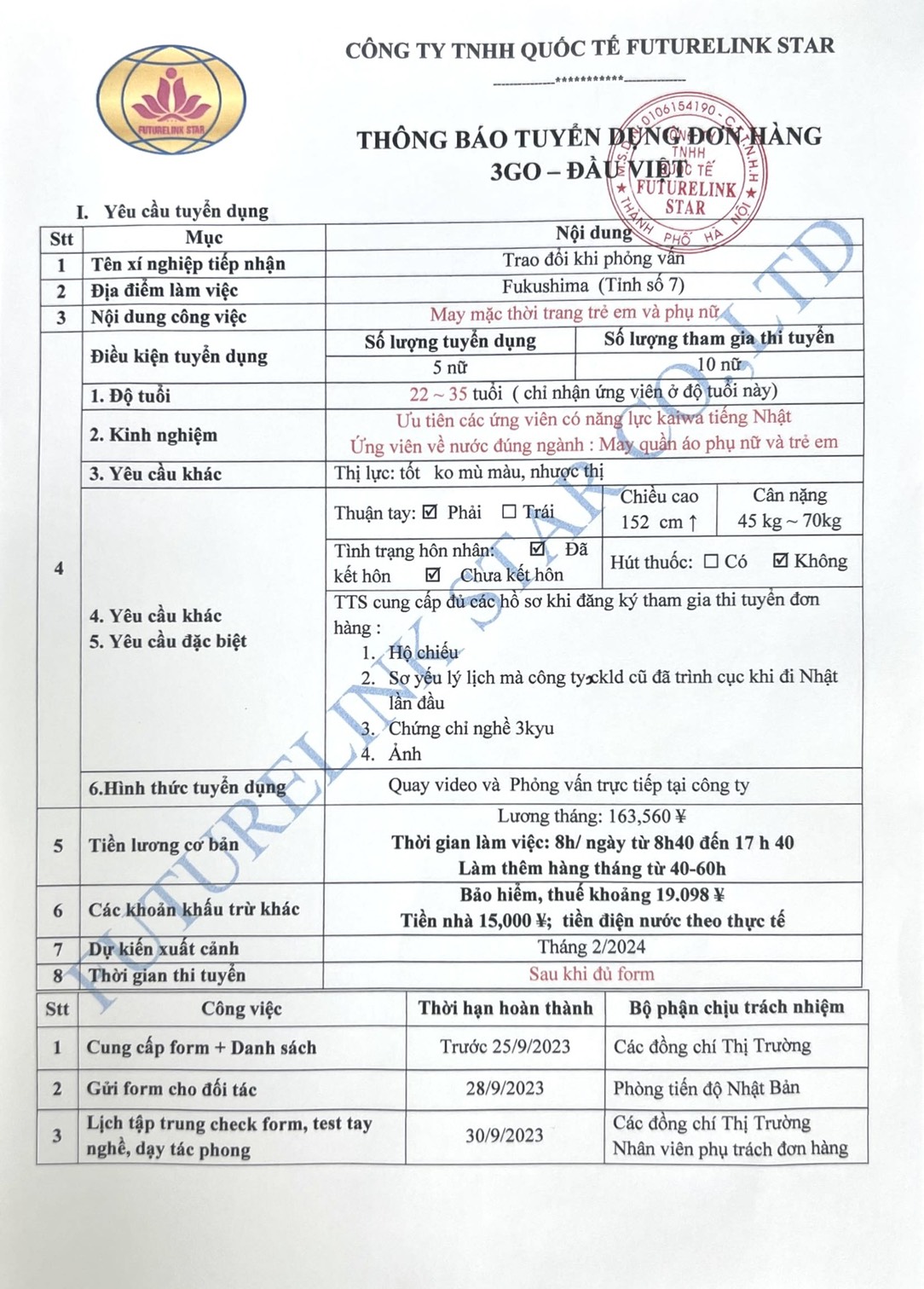 5. TUYỂN 5 NỮ MAY QUAY LẠI THEO DIỆN TTS SỐ 3 ĐẦU VIỆT NAM TỈNH FUKUSHIMA. LƯƠNG THÁNG 163,560 YÊN/THÁNG. PHỎNG VẤN NGAY SAU KHI ĐỦ ỨNG VIÊN
