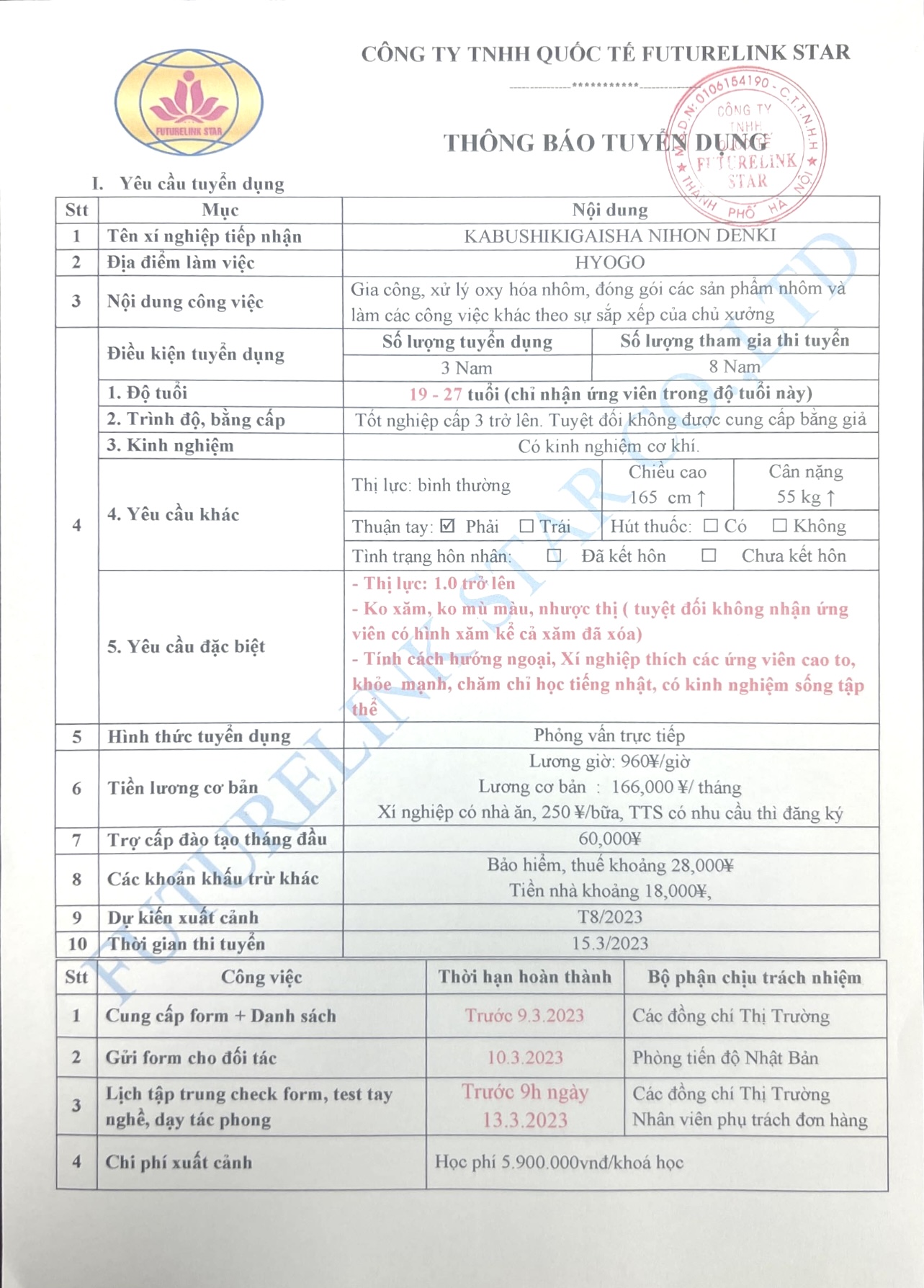 5.TUYỂN 3 NAM GIA CÔNG, XỬ LÝ OXY HOÁ NHÔM TỈNH HYOGO, LƯƠNG CƠ BẢN 166,000 YÊN/THÁNG. PHỎNG VẤN 13.3.2023
